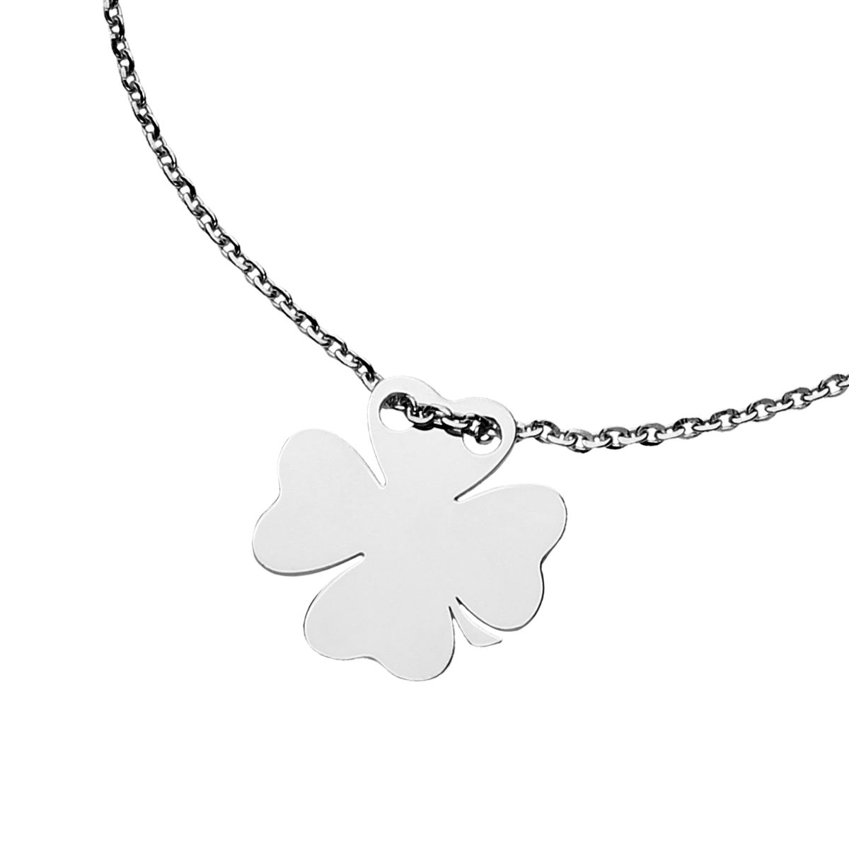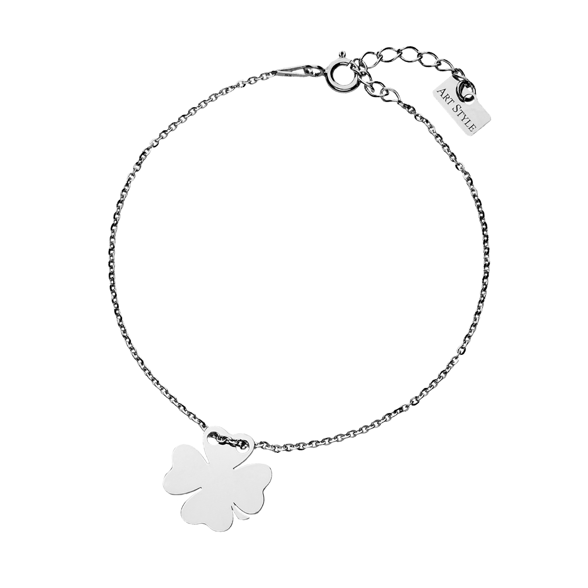 Srebrna rodowana bransoletka koniczynka.