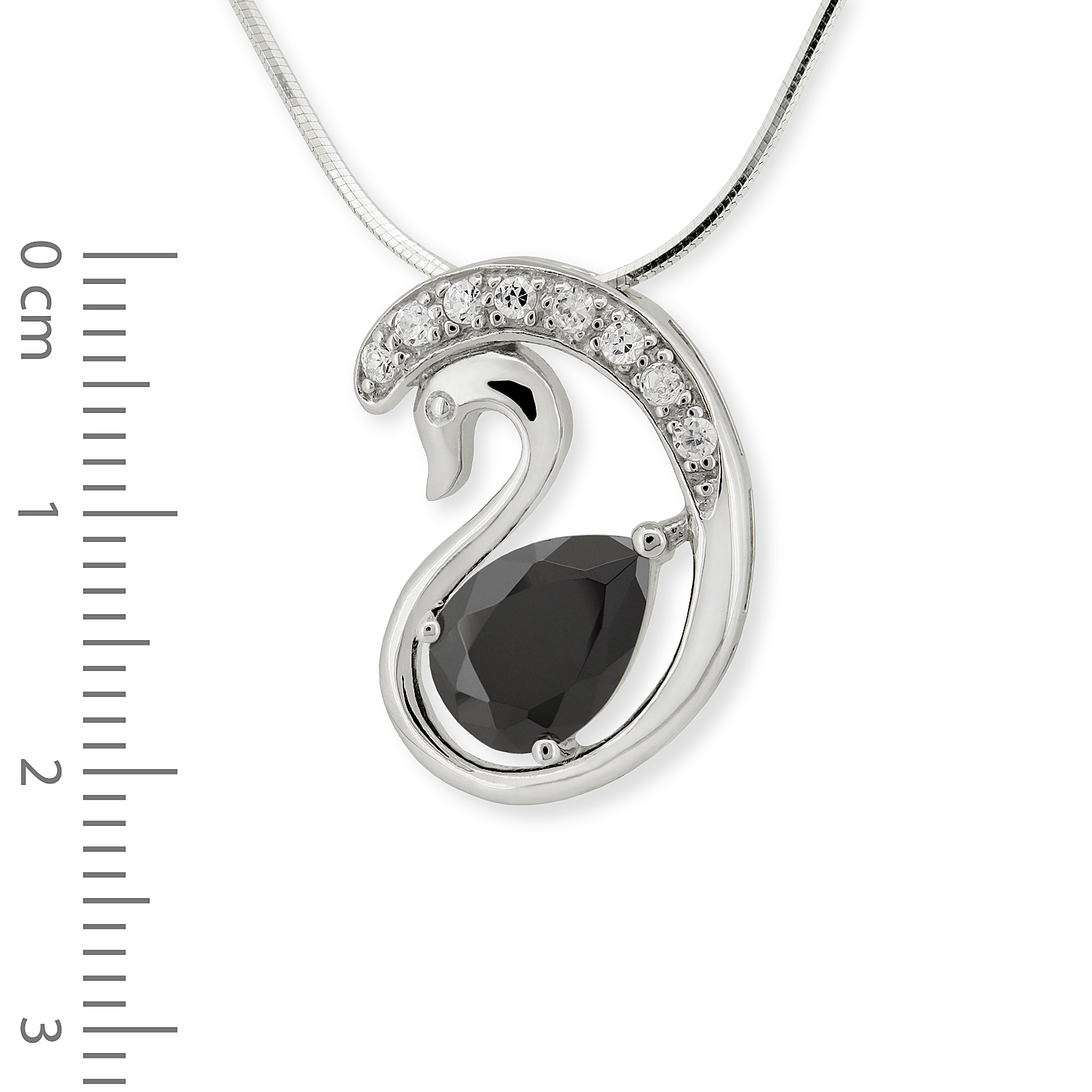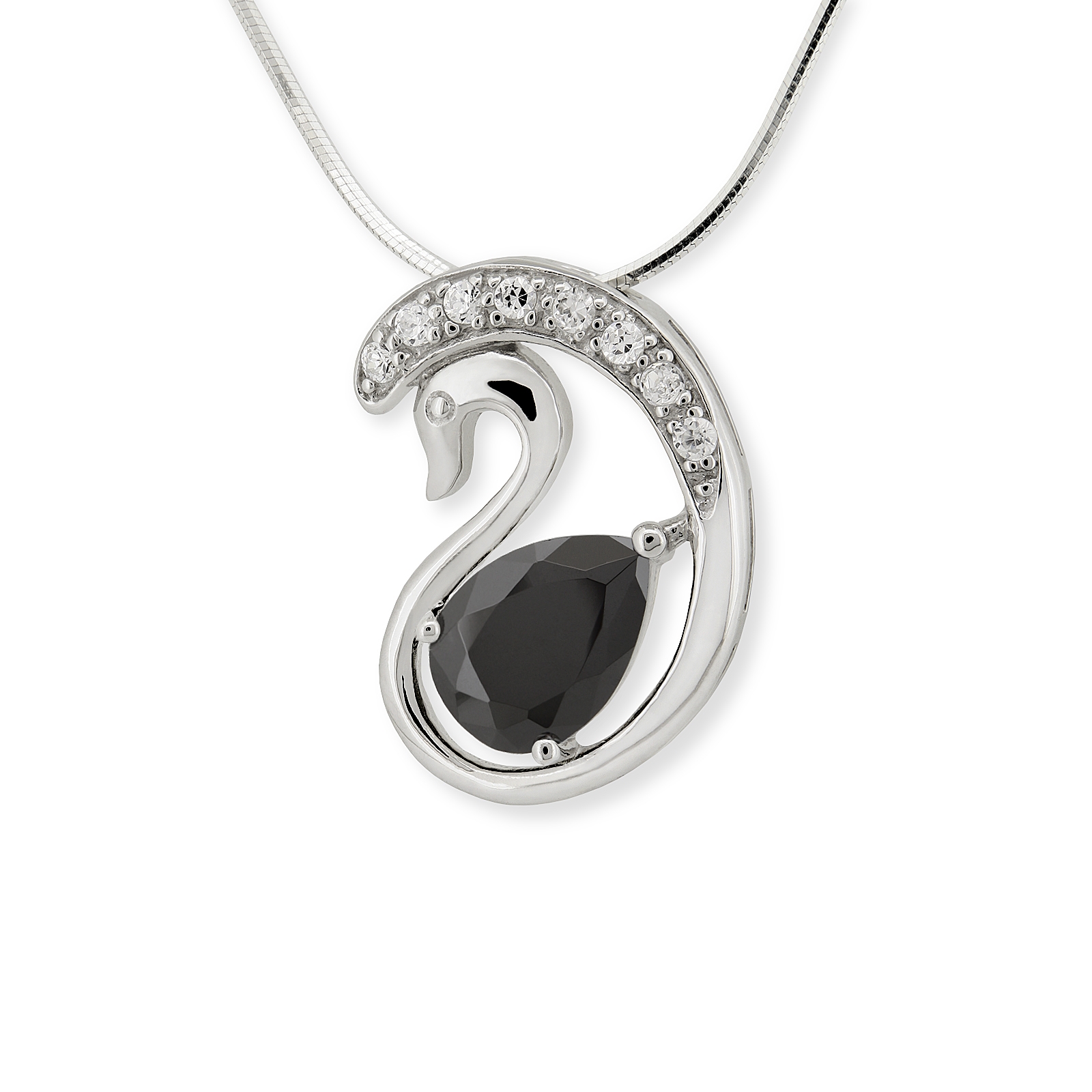 Srebrna rodowana zawieszka łabędź z cyrkoniami.