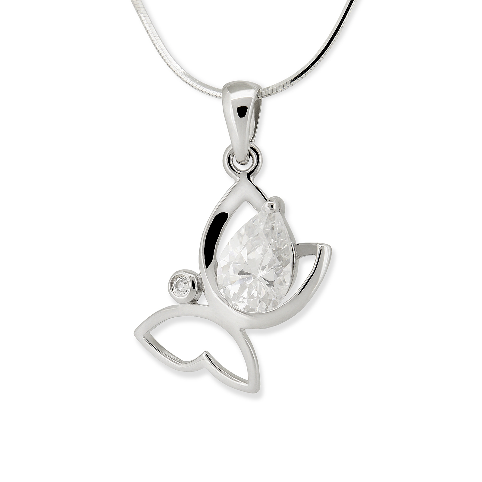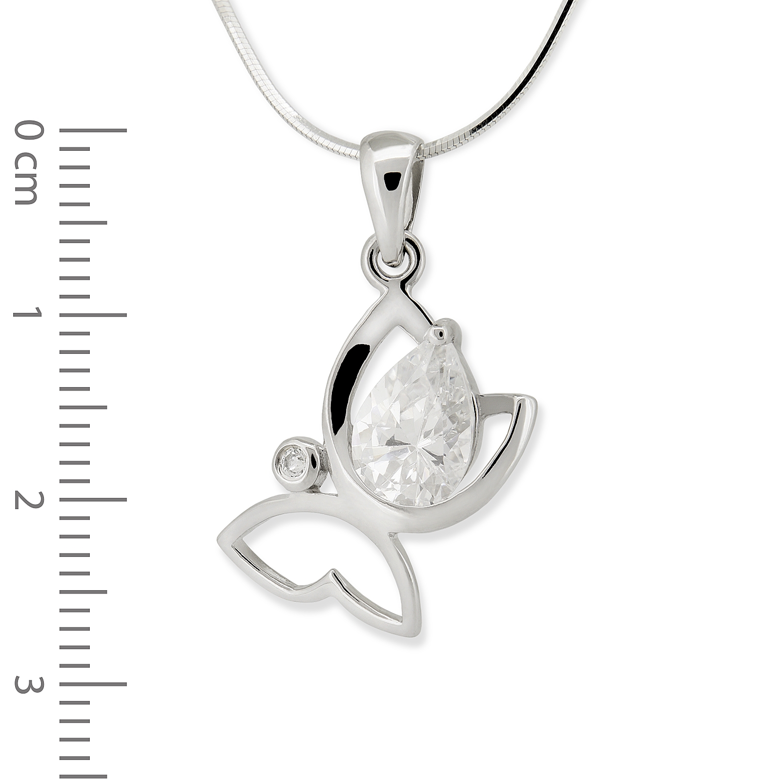 Srebrna rodowana zawieszka motylek z cyrkoniami.