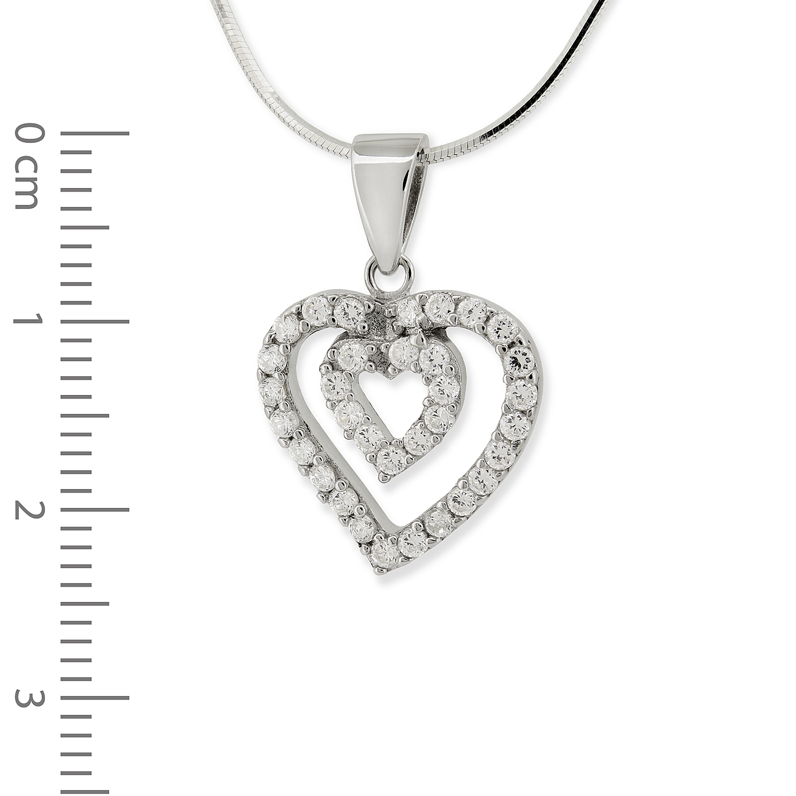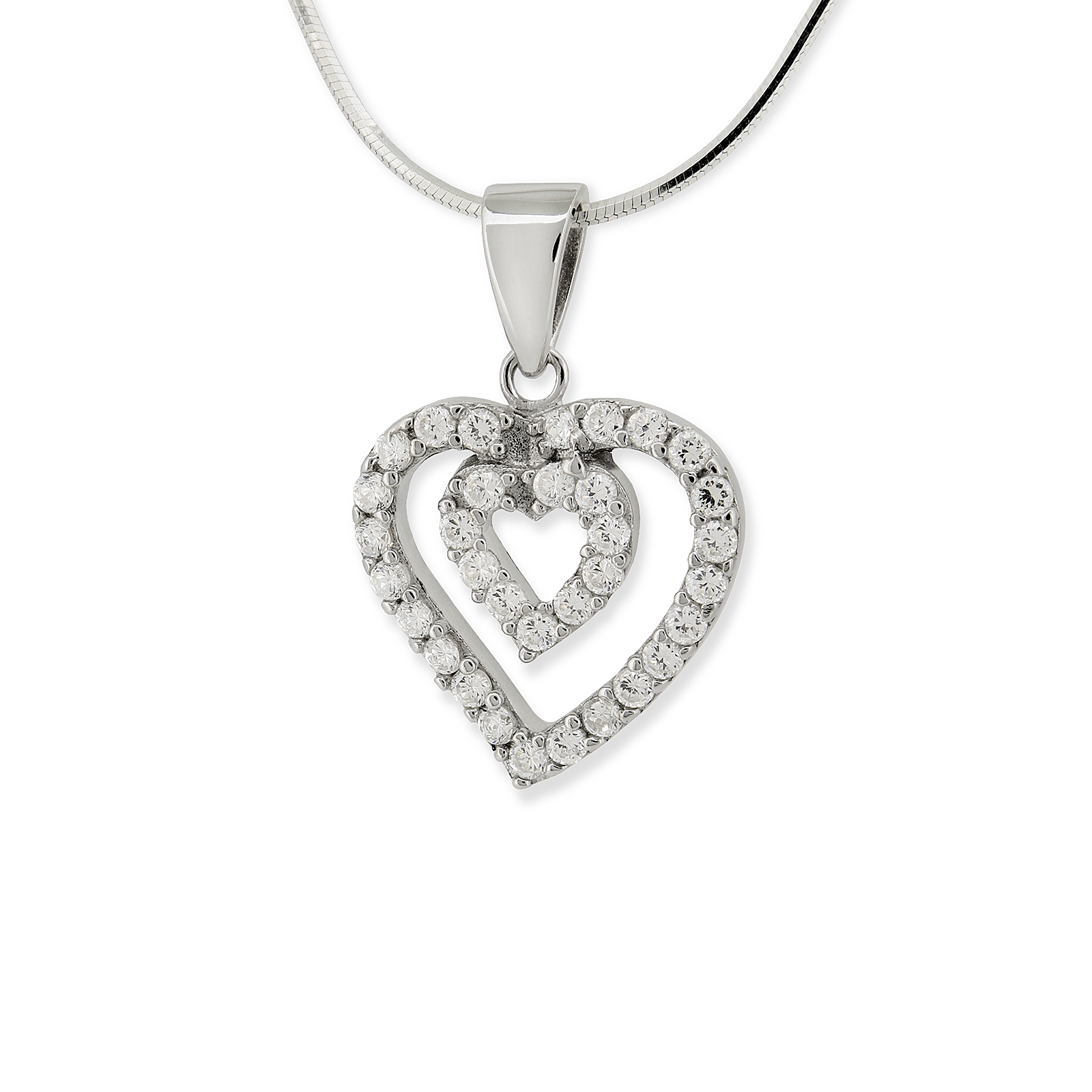Srebrna rodowana zawieszka serce duże z małym z cyrkoniami.