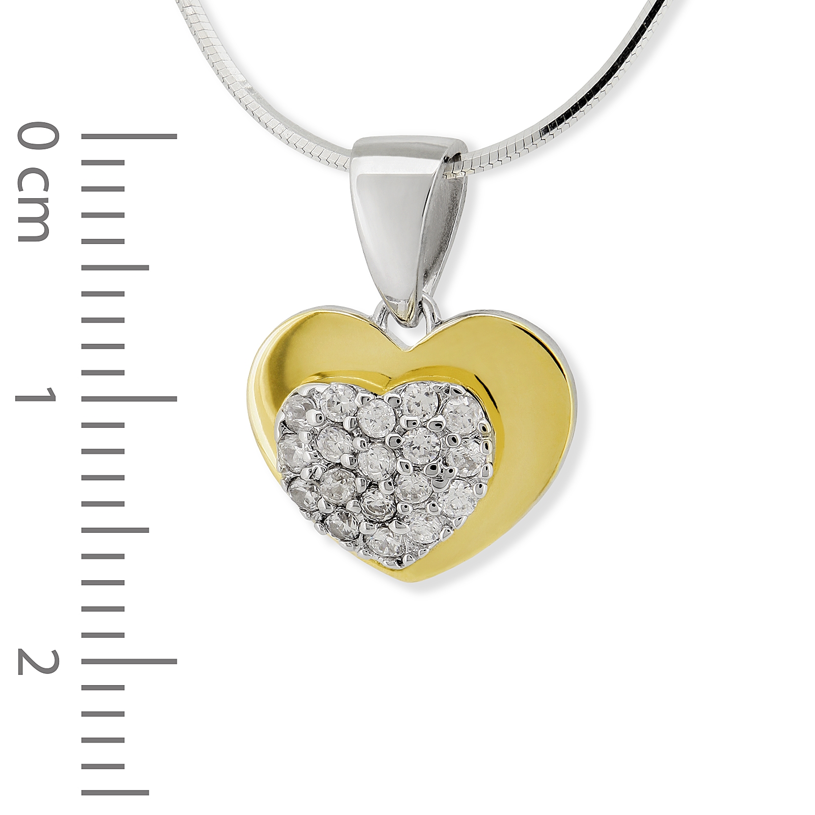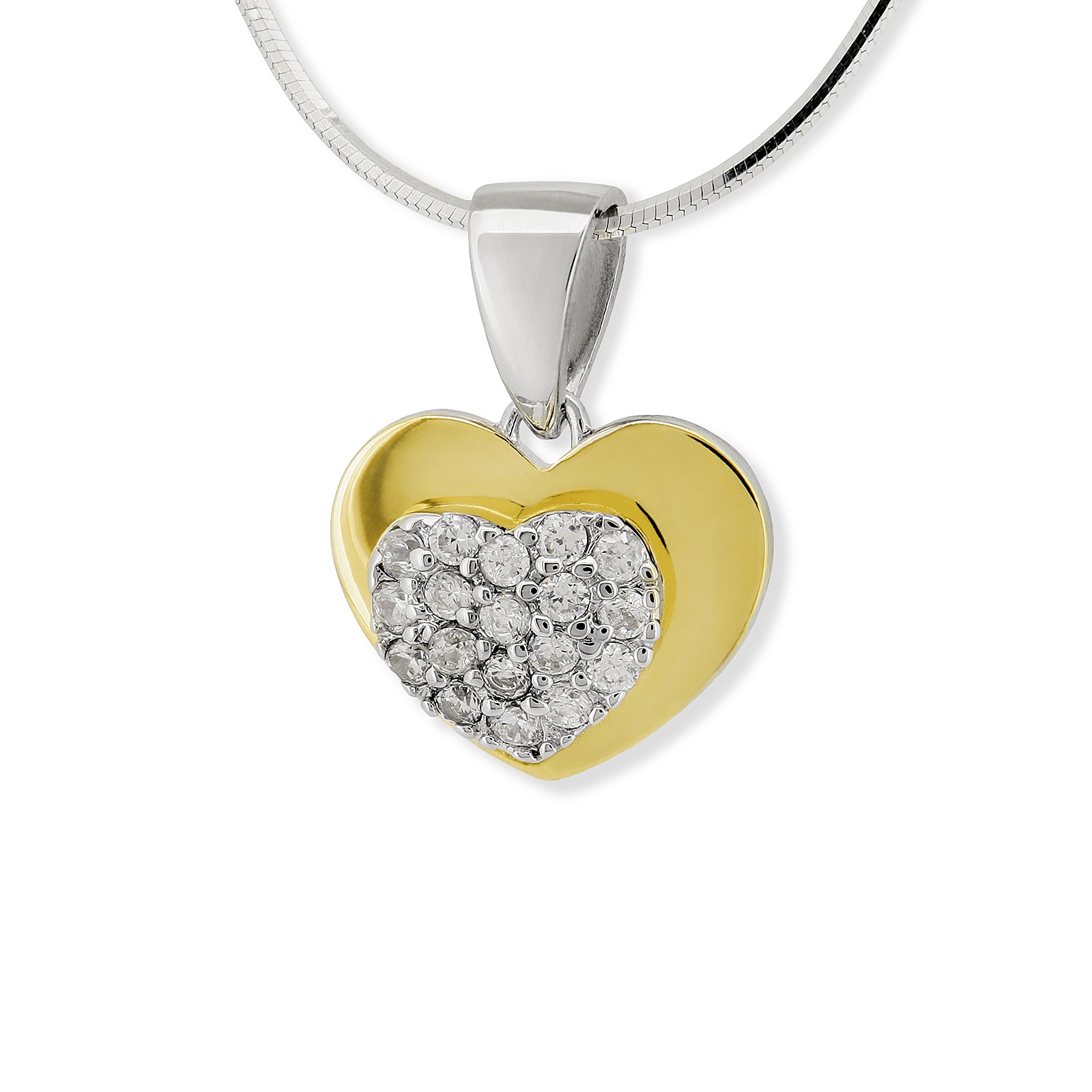 Srebrna pozłacana (0,1 mikrona) zawieszka serce z cyrkoniami.