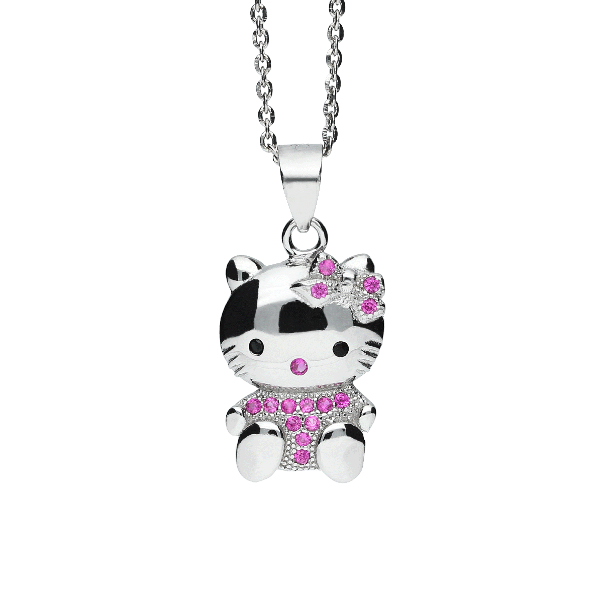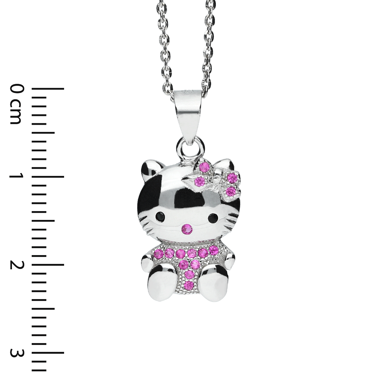 Srebrna rodowana zawieszka kotek z cyrkoniami.