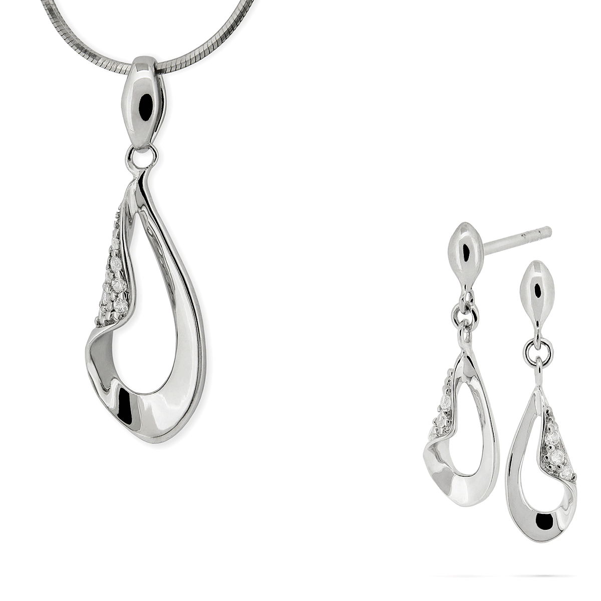 Srebrny komplet biżuterii z cyrkoniami.